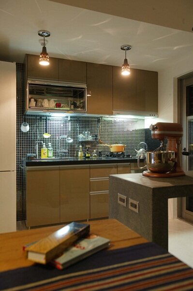 身為美食作家,施穎瑩也熱愛下廚,夢幻廚房採開放式, 喜歡熱鬧的她希望做菜時,能和老公、朋友沒有距離感,大家可以一起幫忙。超愛吃麵包、蛋糕的她,設計了一座灰黑磨石子的中島台,閒時還開課教小朋友做戚風蛋糕、辮子麵包、燕麥餅乾等,烘焙為家裡增添溫度。
