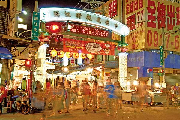 臨江街夜市的範圍,主要指基隆路至通化街之間的臨江路,以及通化街39巷50弄與臨江街所形成的十字形區域,總長度大約350公尺。白天夜市前段仍維持坡心市場的早市市集,不少婆婆媽媽提著菜籃選購雞鴨魚肉、蔬菜水果;近午時分,服飾店拉開鐵門作生意,另外還有日用品、寢具、鞋襪、傢飾品……等,舉凡女人喜歡的商品通通都有,而且樣式極多,就是為了迎合比例較多的女性客群,而且這條夜市的特色是店面高達七成,因此客人也是以固定客源居多。