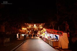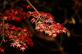 京都天滿宮白天的楓葉美不勝收,晚上燈光一亮起,讓楓葉有著與白天不一樣的風情。