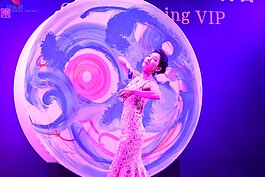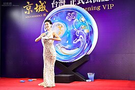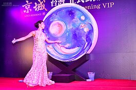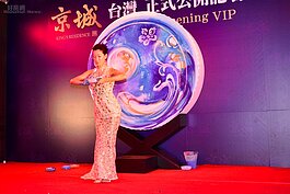 日本知名藝術家神田沙織,透過結合皮膚、大地、紙、服裝、音樂、視覺、舞蹈、光的表演作畫方式成名國際,讓高雄知名建商也為之瘋狂,在知名豪宅落成當日,請到記者會現場表演開幕慶祝。(好房網News記者 陳韋帆/高雄報導)