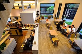 為拉近與住戶之間的距離,已有建商放棄樣品屋的型態,進而開設咖啡廳;這樣不僅可以拉近與鄰里間的距離,更為社區增添了文藝氛圍,就讓我們看看建商行銷空間的新形態。(好房網News記者 陳韋帆/攝影)