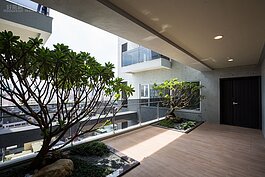 建築單、雙層錯層植樹規劃;單雙層具有外玄關迎賓植樹前庭或客廳側邊私人花園空間的選擇,錯落的對外採光面增加建築的豐富性與趣味感。