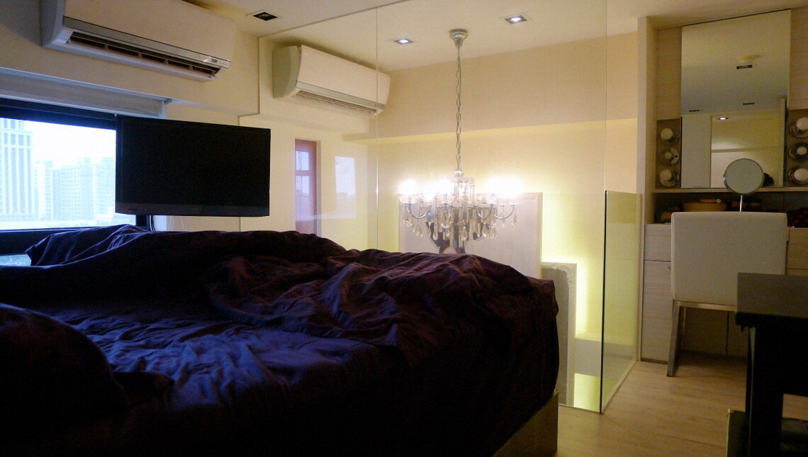 ↓低調奢華的臥房,旁邊以玻璃牆營造空間穿透感