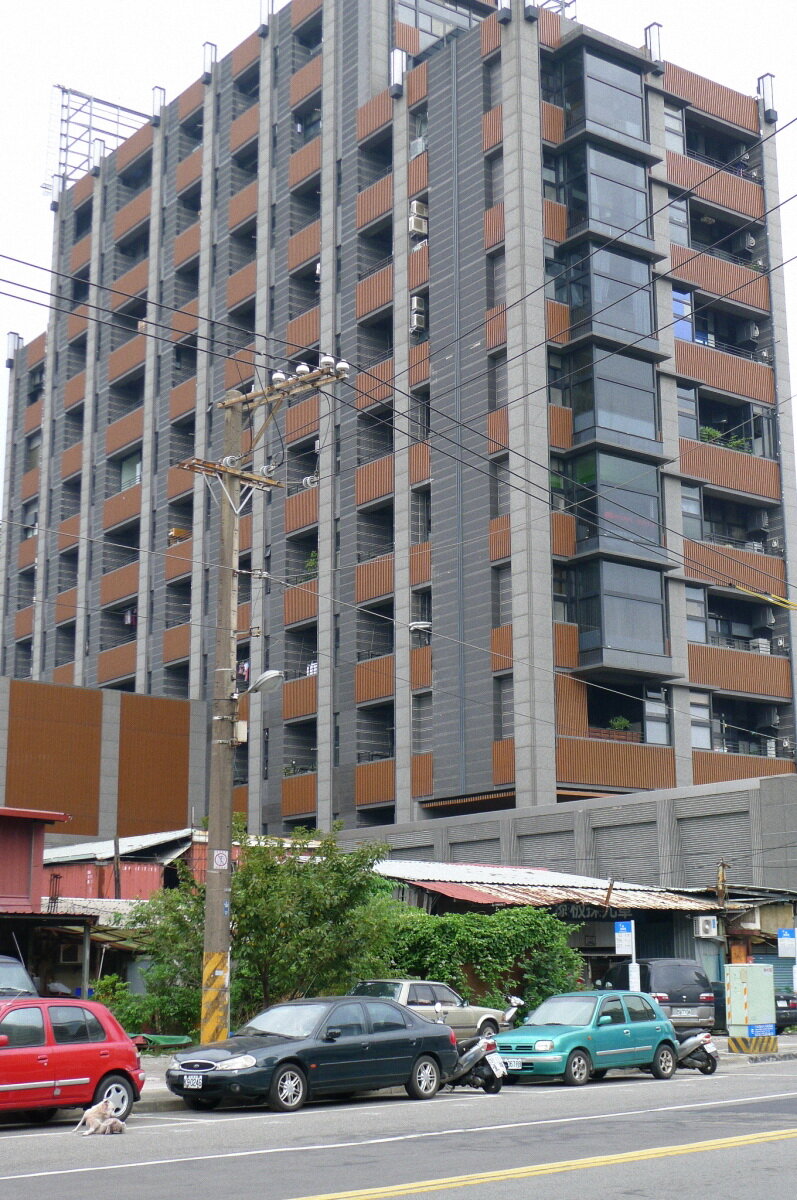 ↓新大樓前方格格不入的老房舍,但也算是都市一景