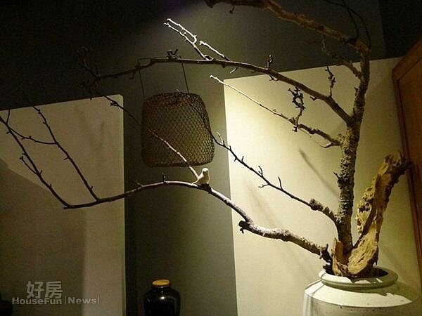 對蕭文傑而言,「蕭廊」就是自家客廳的延伸,他說,這裡共分成三個區域,台灣、中國和日式的茶區,他從鶯歌和三義挑選出許多復古的木頭傢俱,讓室內充滿著一股懷舊風,許多的佈置其實都深具巧思,在泡茶區旁的一顆枯樹上掛著捕鳥籠,樹枝上站著一隻磁雕的鳥,其中的意境,就看你怎麼解讀。