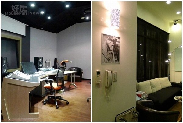 斥資千萬元打造的個人錄音工作室(左);規劃有休息的沙發區(右)