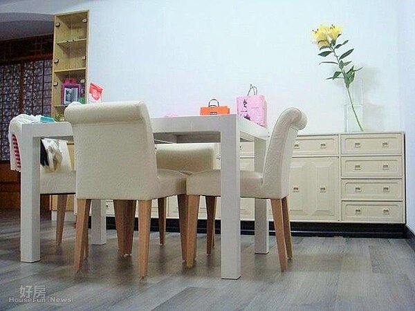 純白餐桌加上桌邊櫃,很有家的感覺