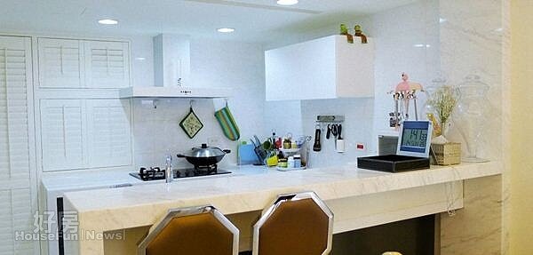 目前自住的百坪的木柵華宅,斥資千萬元裝潢,以白色為基底的設計是她的堅持,連院子的休閒沙發也都是純白,但因為大女兒正值學齡前,白色最怕髒,苦了老公每天得跟在女兒後面,擦拭雪白的家具。她笑說:「當初買房,就是被這個大院子吸引,住了三年多,朋友來家裡烤肉聚會,夏天放置塑膠的小型游泳池讓小孩玩水,這些都是住都會區享受不到的生活。」