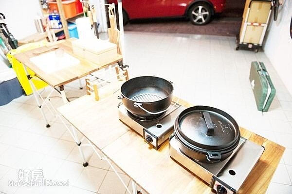 客廳的玄關屏風也是他的傑作,是用裝潢剩下的木塊,足足花了三天的時間拼起來的,此外,阿嬌的化妝台、出外景用的活動廚房,也都是劉仁琪一木一釘,花了心血和愛心,為她打造獨一無二的作品!
