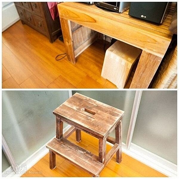 家中的木櫃、椅子都出自劉仁淇之手,省下很多經費