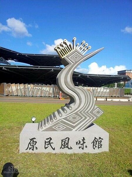 原住民風味館外擺放的藝術品,正是米類的作品《綻放》