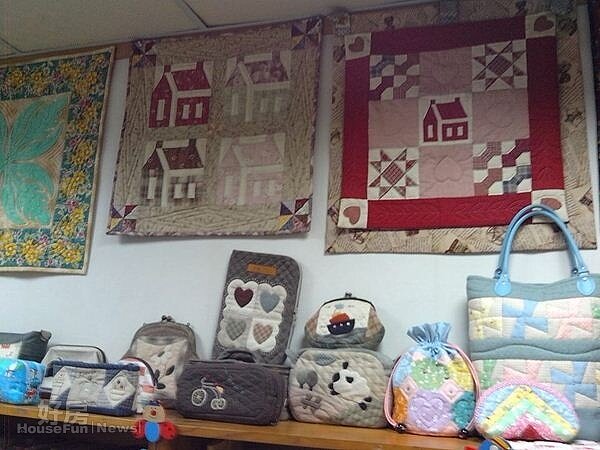 拼布教室內琳琅滿目的拼布成品
