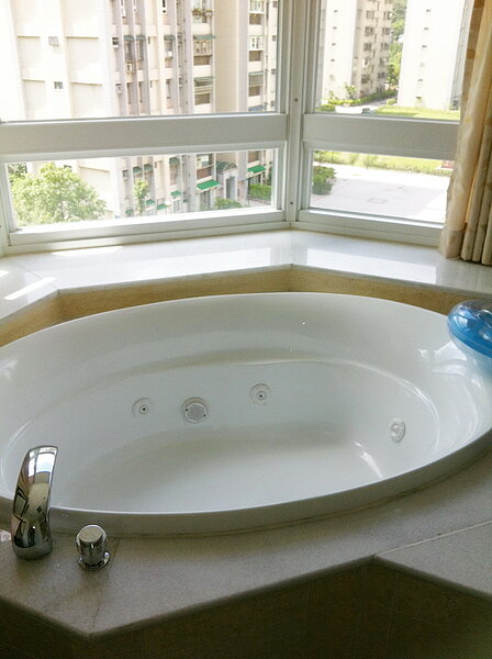 他笑說,當初決定買下這房子,除了居家環境,浴室也加分不少。「我不喜歡打開窗戶看到的都別人家的水泥牆或冷氣機,台北有太多這樣的房子,所以環境真的很重要。」郭人豪捨棄市中心,一方面太貴,二方面擁擠,他花同樣的錢卻能換大一點的房子,重點是環境清幽。除了有河有山,社區裡又有游泳池、烤箱、SPA、健身房,儘管1個月的管理費要7、8千元,但換算成到外面健身房或俱樂部的費用,他覺得很值得。