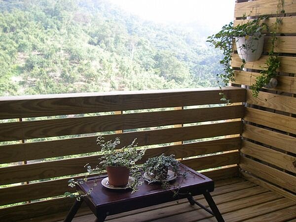 很少人的主臥可以有一整片落地窗,並有個小陽台,王薇說很多人會為了空間,犧牲陽台,將房間外推,不過她沒這樣做,還請師傅幫她用南方松做個小露台,一邊看山景、一邊喝茶吃點心,很棒的享受。