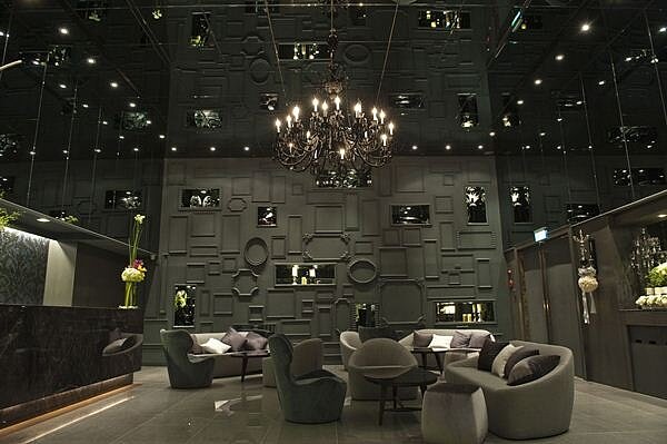 ↓挑高六米的迎賓大廳,牆面以畫框為裝飾