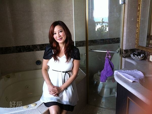 大多藝人都有的更衣室,她當然也沒少,裡頭的梳妝台,就跟攝影棚的一樣,但最特別的應該是她的衛浴了,有一個貝殼按摩浴缸,外面還有一個露台。「這個夾層空間是我自己打造的,因為不希望浴室濕濕悶悶的,能夠有對外的感覺,所以做了一個露台。」