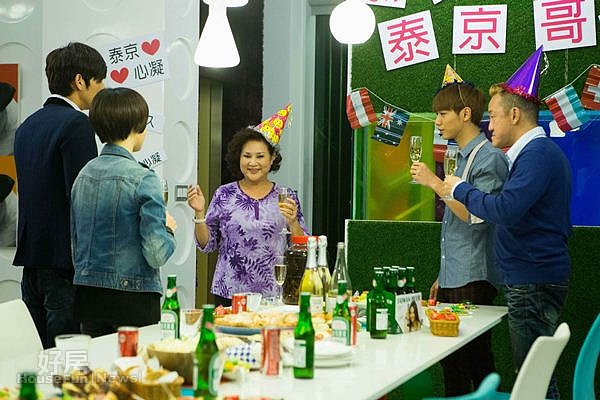↓黃泰京與柳心凝的戀情曝光,團員們在餐廳裡開PARTY慶祝