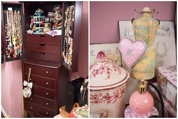知名部落客花猴天生就是購物狂,她的主臥房佈置得很有公主風,各式各樣的古董櫃,擺滿讓人眼花撩亂的手飾和配件,加上收藏的絨毛娃娃、香水、紀念品,讓整個房間顯得熱鬧繽紛!