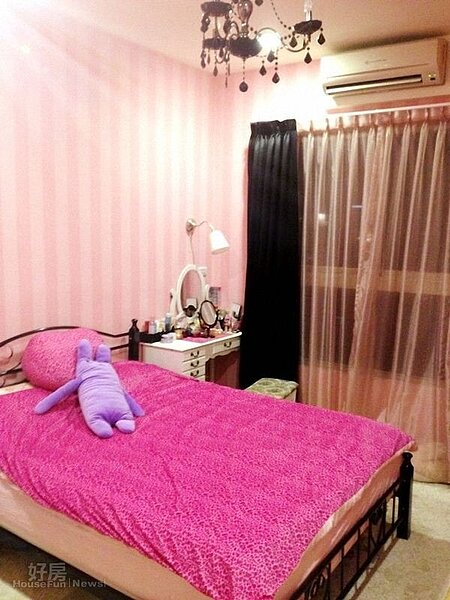 ↓粉色色系臥房搭配紗簾,非常夢幻