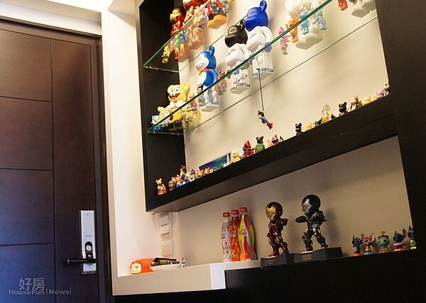 購屋後首要面臨的就是裝潢問題,雖然林小琳平時給人點子用不完的印象,但對於裝潢卻沒太多想法。「我還蠻佩服某些人買房還會自己畫設計草圖的,說真的我對這部份真的沒有概念,只知道自己嚮往簡單舒適、有質感,盡量別用到木皮,顏色以黑白為主…另外,一定要有一大片公仔櫃,畢竟我有太多珍藏公仔想擺出來。」最後林小琳找了信任的室內設計師表明需求,並給予自由發揮的權利,花了80萬裝潢費,打造出充滿強烈個人風格的居家氛圍。