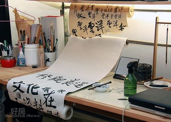 馬予路喜歡自己改造傢俱,這張書法練習桌還有可捲動的宣紙呢