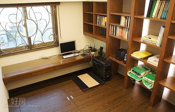 和室地板下共有6個超大儲存空間,另外還有木桌與書櫃設計,平時也能當成書房