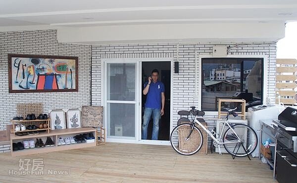 於是曾在法國、義大利工作多年的Craig,決定把頂樓打造成充滿渡假風情的北歐風,「住頂樓最棒的就是可以打造出空中庭園,因此我把整片水泥地鋪滿斜木片,搭配一些木製櫃、掛畫等就很有Fu了;另外這裡的View相當好,甚至能直接眺望台北101大樓,以前買的不鏽鋼烤肉爐終於可以派上用場了,今年跨年應該會邀請朋友到這裡辦個101煙火烤肉趴吧!」