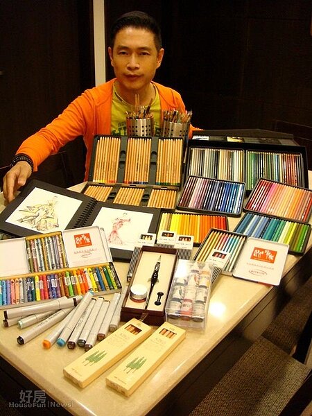 朱正生閒暇時最喜歡在家裡畫時尚服裝畫,家中並蒐藏許多色鉛筆
