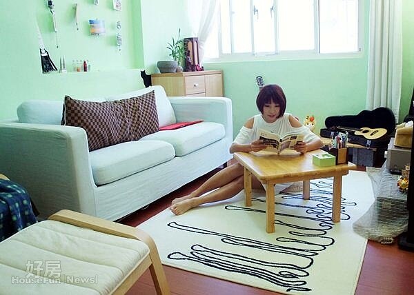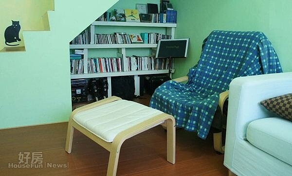 不過,最令人好奇的其實是樓梯旁、即靠近大門窗邊的閱讀區,以雙人沙發、單人躺椅、茶几桌簡單佈置成,另外還準備了擴大機、幾把吉他與CD片,似乎也是個音樂鑑賞的好所在,恰逢午后陽光灑入室內,頓時心生擁懶、想放空的念頭。「這裡雖定位為閱讀區,但其實它的功能很多,我平時會在這裡發呆放空、或邊聽音樂邊寫稿,另外我還有把這區拍照上Couch Surfing沙發客登記,未來也歡迎背包客入住。」