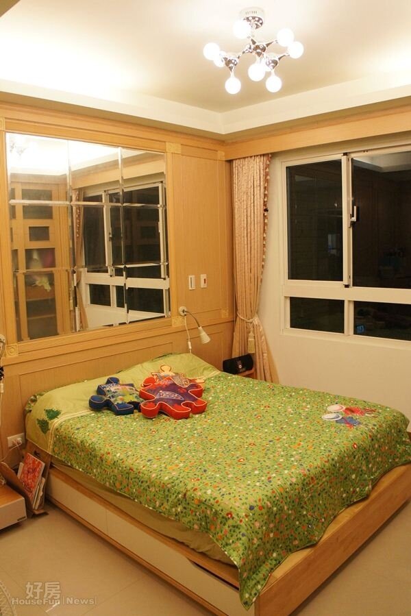 主臥採用顏色鮮豔的床罩與抱枕,讓空間頓時活潑起來