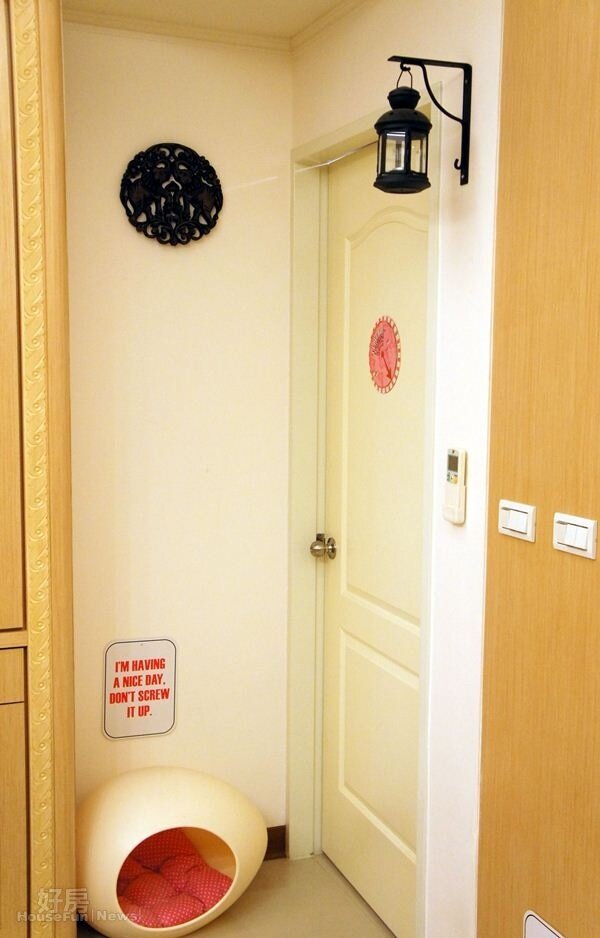臥房門口的燭台裝飾與貓窩蛋指定區、造型鐘、壁貼…各細節皆充滿巧思