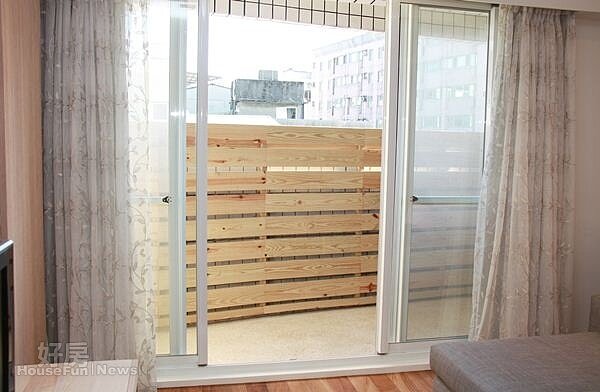 值得一看的是,甚至連陽台都以南方松木板搭出一個景觀台,艾瑞克表示未來會考慮放上一些盆栽,使看起來更有朝氣。至於臥房,除了延續整體木系風格,另外還導入鄉村風玩色概念,包括主臥房採用天藍色、女兒房間則採用超夢幻的粉紅色等。
