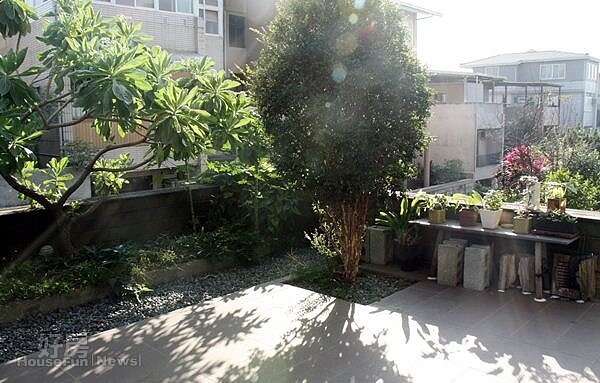 「裝潢概念還是以親近大自然為主,沒有名貴的傢俱或裝飾襯托,但堅持整個居家空間必須融入陽光、空氣、綠色植物三大元素;另外,由於家人從事攝影、電影與造型相關工作,因此在佈置上不按常理出牌,很隨興!」前院裡有個迷你的「環保花園」,種著兩顆木瓜樹、蕃薯葉、山藥、樹葡萄…等,有些是黃老師在路邊撿來的棄養盆栽。至於一樓將近80坪的寬敞空間則結合了工作區、客廳、廚房及及盥洗室。