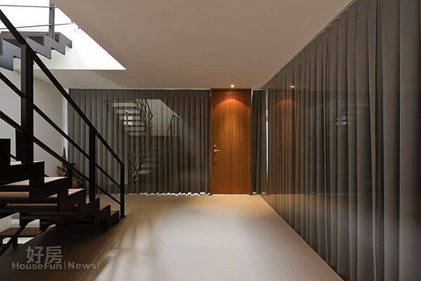 二樓臥室及書房皆以厚片玻璃搭配門簾取代傳統牆面,在保有個人隱私同時也能享受絕佳採光效果