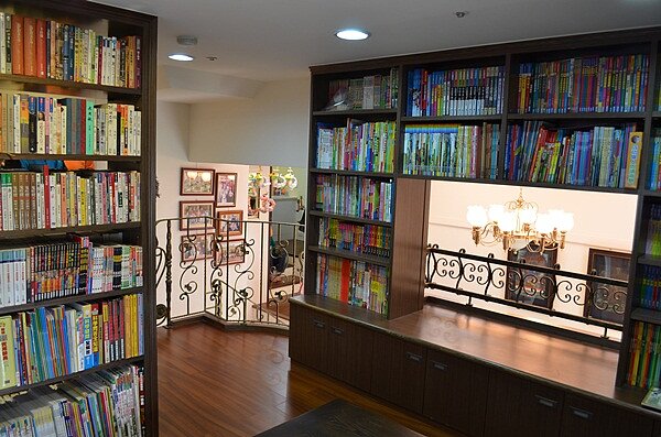 ↓書房以書櫃當成隔間,營造有如書店的氛圍