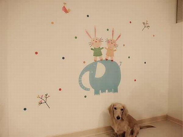 ↓用可愛壁貼為愛犬佈置的可愛動物區