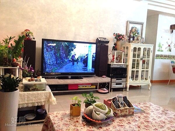 買房初期,大約花了100多萬重新裝潢,但這幾年阿寶迷上鄉村風,便逐步DIY改造成自己的夢想家。首先,客廳的沙發原本是黑色的,感覺十分暗沉,於是她到永樂市場選布,請裁縫重新做了小碎花的沙發套;而木製的餐桌則搭配上色彩繽紛的桌布與椅套,讓用餐空間也活潑起來。