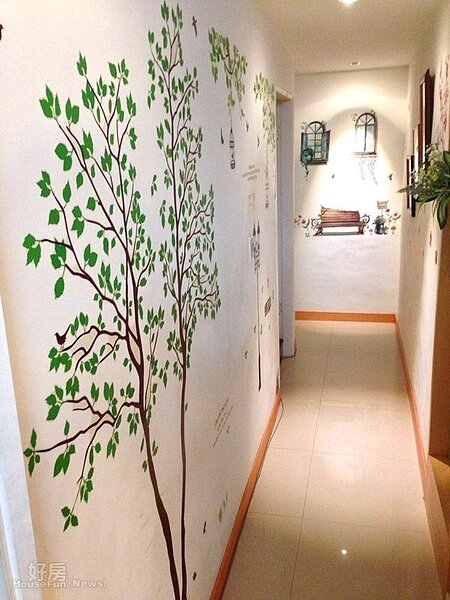走道貼上綠意壁貼,好像走進林蔭小徑