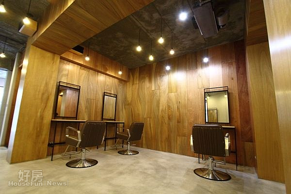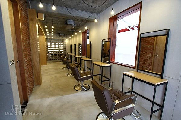 1.線條:髮廊裡大多數的客人都是女性,在裝潢上可以運用很多柔和的線條,降低工業風格的距離感。像是裸露在外的燈線,整排自然圓弧的垂墜,可以增加空間的溫度。
