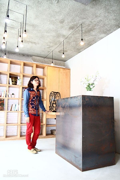 鏽鐵櫃台也是辜顯駿的創作。畫好設計請鐵工廠依照尺寸訂製,再用砂紙先粗後細打磨,慢慢讓它自然生鏽,「整件鏽鐵就像有了歲月的痕跡,就是鏽鐵最有魅力的地方。」辜顯駿說。