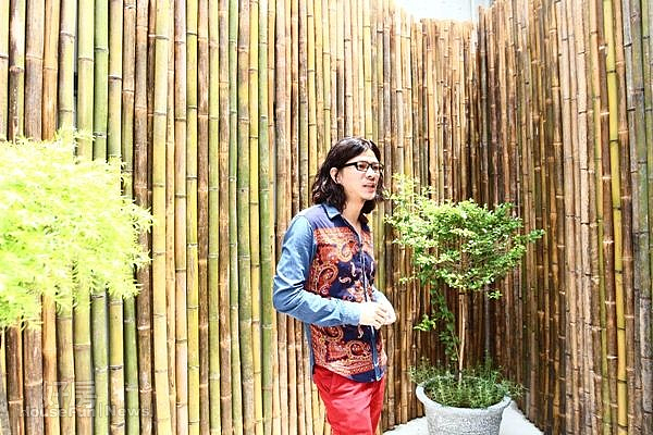 為了調和滿室的硬線條,前屋主用鐵皮加了屋頂的後院被辜顯駿拔掉了頂蓋。跑去阿嬤在南投竹山的竹林,花了七天的功夫砍竹子、載運回台中,自己釘出這片黃綠相間的竹景。辜顯駿說,悶的時候就在竹林裡站站,藍天輝映著竹林,就會想起小時候在阿嬤家的回憶,捕捉一點家人的支持吧!
