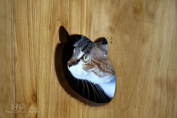 打造貓屋停看聽 1.貓洞:裝潢的時候在木作門片上流了很多貓洞,程修玲提醒貓洞的大小是學問。家裡養的是6公斤左右的中型貓,15到20公分大小的貓洞就剛剛好,太小,貓咪鑽不出來;太大,貓咪會沒有安全感。最好的方式是依照家裡的量身製作,才是最適合的貓洞。 2.貓走道:櫃簷上方到天花板的空間,是貓咪專屬休憩區,貓小孩會在上面閒逛、睡覺。程修玲認為貓走道的寬度一定要有50公分以上,貓咪會在上面睡到四腳朝天,走道不夠寬會有摔下來的危險。 3.窗戶安全:擔心貓咪會爆衝!程修玲在主臥室的大窗外,特地在窗花上加了細密度的設計,紗窗也外加一層防護。窗花要多密才夠?程修玲裝潢的時候有抱貓家人來比,確認牠們爆衝也鑽不過去才放心。 4.清潔:養寵物的家庭對清理貓毛、狗毛清理是一大難題,程修玲的秘訣是把所有櫃體、家具離地10公分以上,讓吸塵器、掃把、拖把能進入清潔。抑或是完全貼地密合,讓寵物毛不會堆積卡灰塵。 |