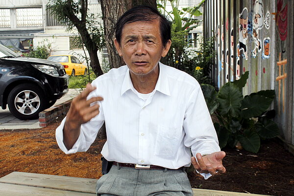 吳阿松述說搶救老磚窯的艱辛過程。(圖/記者陳木隆攝)