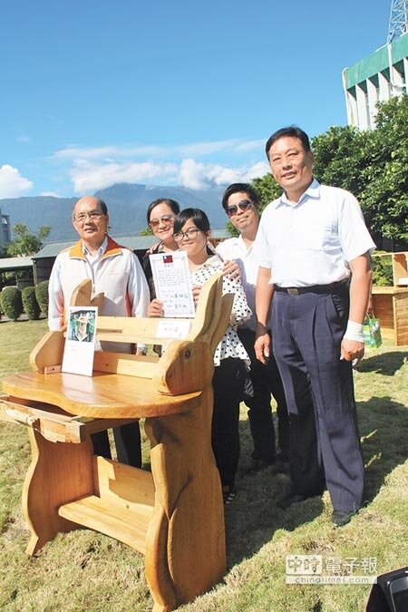 就讀吉安鄉光華國小五年級的林均燕,將飼養10年的寵物兔模樣化身為書桌(見圖,張祈攝),第一次做木工的她,在媽媽林麗棻的指導下,有模有樣的拿起鑿刀刻出兔毛的柔順。她說,自己的兔子也是深褐色毛色,跟木材的顏色一樣,書桌就像放大版的兔子,讓她願意在書桌前坐久一點。