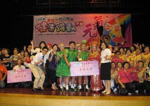 高雄市政府衛生局27日在長青綜合服務中心辦理「高雄市101年老人健康躍動競賽-決賽」,由10隊初賽脫穎而出的隊伍進行決賽,最後仁美社區發展協會拿下冠軍,同時與第二名前金社區關懷據點代表高市參加全國總決賽。
