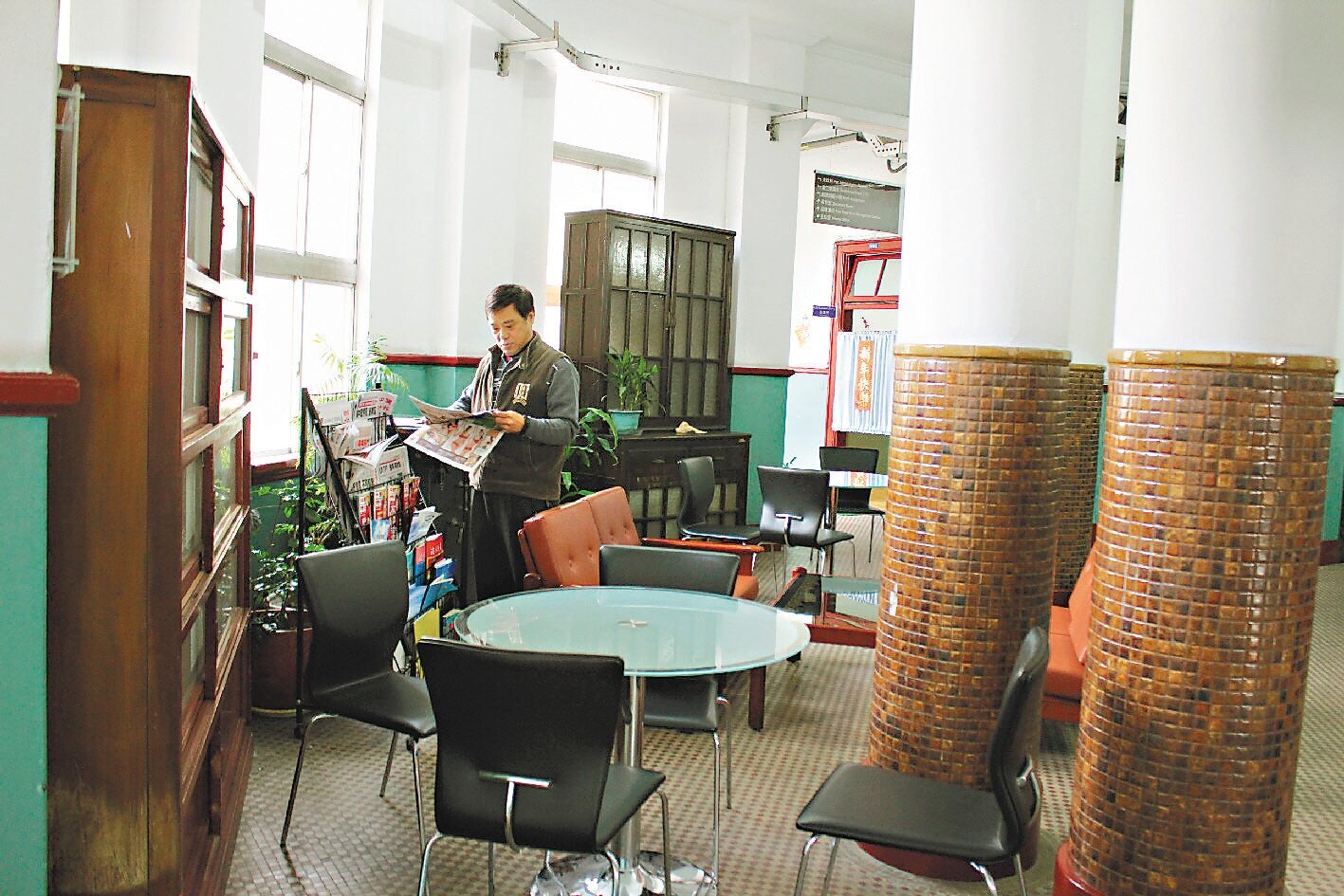 主任許堂修說,有時民眾洽公需要較長時間溝通,也不用跟承辦人隔著櫃台講話,可以面對面坐下來。四周陳設的辦公設備,已由新式辦公家具取代,閒置著也可惜,不如拿出來懷舊一下,看看早期灌了水泥的保險櫃、聞聞有木頭香的公文櫃,應該很有意思。