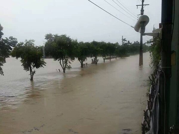 網友在臉書發布,新港鄉從潭底仔至海瀛路,水已經淹到看不見道路(圖/綠豆嘉義人聯盟臉書) 。