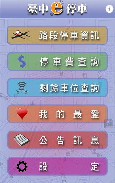 台中市府首創手機APP停車資訊系統,車主可利用手機找到停車位。(翻攝自台中e停車)