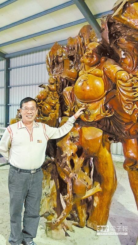 嘉縣太保市五金工具製造商老闆陳德亮(見圖,王瑄琪攝)常以命理和木雕作品與人結緣,前年捐贈雲林縣參天宮氣勢驚人的關聖帝君大型木雕作品,近日再整理出珍藏10多年、價值逾百萬元的雞瘤木雕彌勒佛像。他表示,放在庫房只有他一人可以欣賞,捐出來卻可讓廣大信眾瞻仰、共享,將尋覓有緣廟宇。