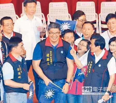 昨上午這場由國民黨舉辦的台北市長及市議員提名人介紹懇託會,湧進近2000人到場,將會場擠得水洩不通,馬英九、連勝文互動情況熱絡。馬除親自為連授旗外,還在台上與郝龍斌一同拉著連勝文的手,高喊「凍蒜」口號,大合唱《愛拚才會贏》,現場氣氛飆到最高點,這也是馬郝連3人在兩天之內第二度同台。